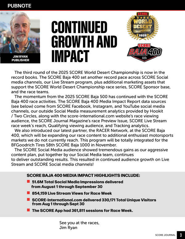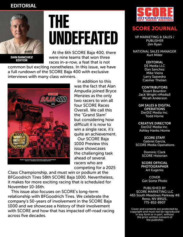 November’s massive BFGoodrich Tires 58th SCORE Baja 1000 is the final round of the four-race 2025 SCORE World Desert Championship.