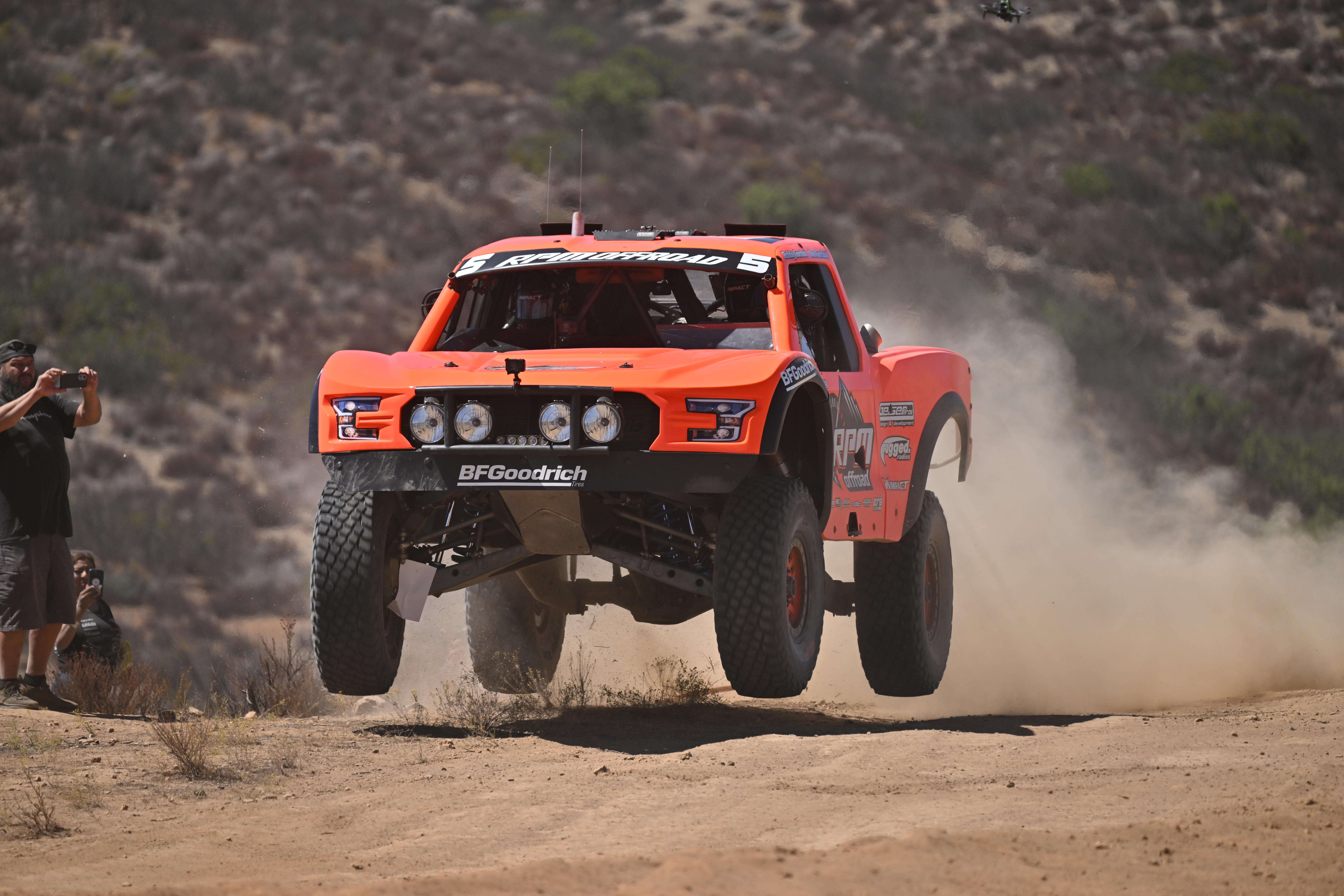 La carrera se sintió bien. Pasé una pequeña curva por un arroyo. Pero aparte de eso, intento mantener la calma. Eso es lo que realmente intento hacer siempre: tomarme mi tiempo, asegurarme de que tengamos una buena carrera. Así que no sé. Ya veremos. O sea, me siento bastante bien. Pero sé que hay muchos pilotos rápidos por ahí. Justin Davis, Jason McNeil, Ryan Millen. O sea, estos pilotos no son ninguna broma, son una gran competencia para nosotros. Es un honor competir contra ellos y un gran privilegio tener la oportunidad de conducir este truck. La familia Olliges es dueña del truck y siempre se han portado de maravilla conmigo, permitiéndome correr con ellos. Así que un enorme agradecimiento a Steve y Jack Olliges y a toda la familia Olliges, al equipo Ford. Gente increíble, no estaríamos aquí sin ellos. Este truck es rápido. Es una One Nine Industry completamente nueva. El equipo Terrible Herbst hizo un trabajo increíble. Esta camioneta es tan deportiva y rápida. No tengo ninguna queja. Partiré y haré toda la carrera. Conduciré todo el vehículo.
